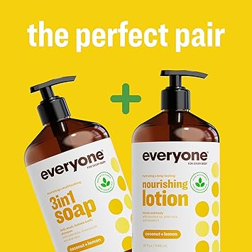 Everyone 2-in-1 Lotion for Hands/Body, 32 ounce (Pack of 2) Coconut and Lemon made with Essential Oils for Men and Women