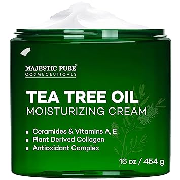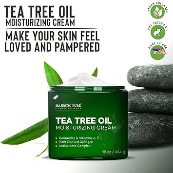 - Moisturizing Body, Hand and Face Cream - Majestic Pure premium grade Tea Tree Oil Cream for face, body, and foot, with 5% Tea Tree Oil, Infused with Ceramide, for Acne-Prone Skin. Suitable for All Skin Types; Men & Women. Made in USA