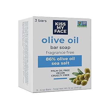 Kiss My Face Olive Oil Fragrance Free Bar Soap, Moisturizing Bar Soap, Cruelty Free Vegan Soap, Palm Oil Free, 4 Oz - 3 Count (Pack of 1)