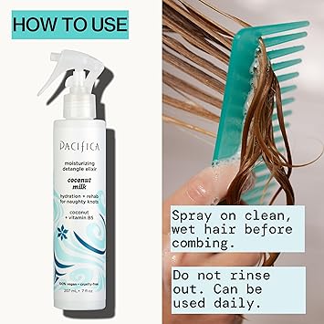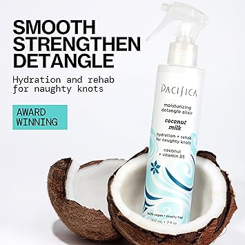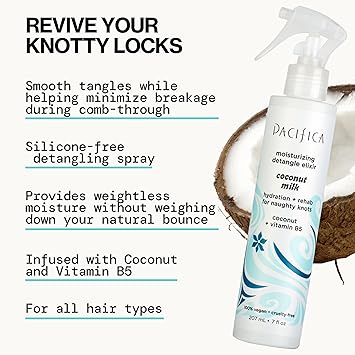 Pacifica Coconut Milk Hair Detangler Spray - Leave In Conditioner Spray, Detangling Elixir Suitable for All Types, Fine and Curly Hair Products, Smoothing, Moisturizing, and Anti-Frizz - 207 mL