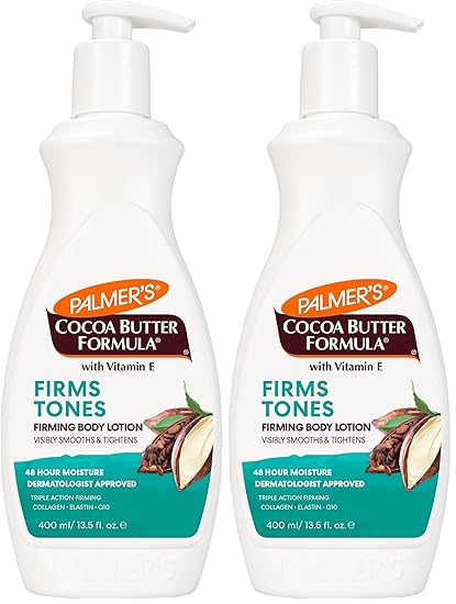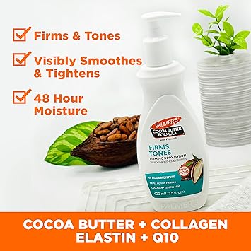 - Skin Firming Lotion: Specially crafted with Cocoa Butter, Vitamin E plus Collagen, Elastin and Q10, this skin firming body lotion visibly firms and tones skin to address loss of tightness, elasticity or dimpled appearance