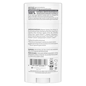 Really Works. Schmidt’s Charcoal & Magnesium— Formulated with certified 100% natural origin ingredients, this deodorant for women and men is made without aluminum. It’s also certified vegan by Vegan Action and cruelty-free by Leaping Bunny. Our women's and men’s deodorants are naturally enriched with magnesium to help neutralize odor and keep you fresh with 24-hour odor protection that’s gentle on skin. Schmidt’s offers some of the best smelling deodorants for men and women and is made with plant-based oils and butters like coconut oil, jojoba seed oil, and shea moisture butter, as well as vitamin E. Luxurious, long-lasting scents made with 100% natural origin fragrance are never synthetic, always made with plant isolates and essential oils like tea tree oil, jasmine oil, and lavender oil. All our Schmidt’s vegan deodorant sticks require only a small amount for overall effectiveness. To use, hold the deodorant briefly to skin to soften on contact with your body heat. Gently apply 1-2 swipes to dry, clean underarms to keep you feeling fresh all day. This aluminum free deodorant for men and women uses a non-greasy/non-sticky formula that is easily absorbed. Do not apply to irritated, damaged, or freshly shaved skin.
