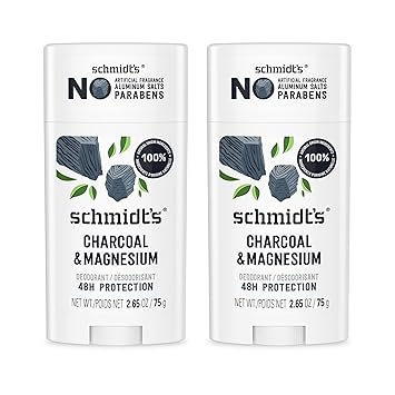 Schmidt's Aluminum-Free Vegan Deodorant Charcoal & Magnesium with 48 Hour Odor Protection, 2 Count for Women and Men, Natural Ingredients, Cruelty-Free, 2.65 oz, Pack of 2