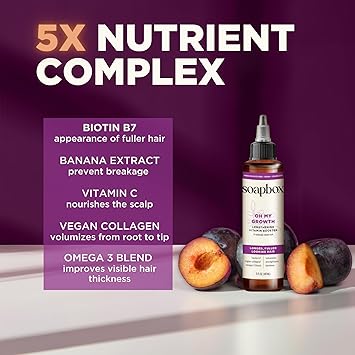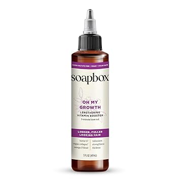 Soapbox Oh My Growth, Lengthening Vitamin Booster Treatment for All Hair Types with Biotin, Vegan Collagen & Vitamins A & C, Paraben & Cruelty Free, For Thicker, Fuller Hair for Men & Women (5 oz)