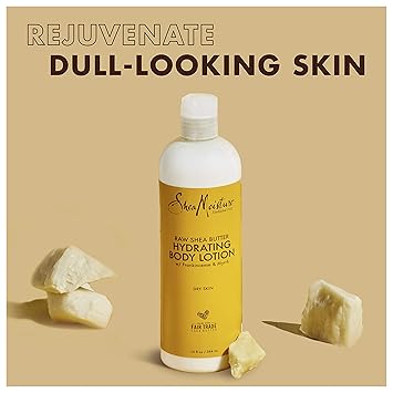 Revive and rejuvenate dry, dull skin with SheaMoisture Raw Shea Butter Body Lotion — a deeply hydrating semi-thick body lotion made with all natural and certified organic ingredients. SheaMoisture Raw Shea Butter Hydrating body lotion is a dry skin moisturizer that deeply hydrates and rejuvenates dull skin. Blended with fair trade shea butter and coconut oil, this body lotion leaves skin feeling smooth and revived. This body lotion, formulated without parabens by SheaMoisture, combines fair trade shea butter and nourishing oils. Can be used as a hand or body lotion. SheaMoisture Raw Shea Butter Lotion, blended with Frankincense and Myrrh, helps restore dry skin. Formulated without parabens. Use this moisturizing raw shea butter lotion all over. Concentrate on rough and dry areas or use as a hand cream and foot cream. For best results, apply this lotion to damp skin. Raw Shea Butter moisturizing lotion is formulated without no parabens, no phthalates and no mineral oil. SheaMoisture Story; SheaMoisture is the legacy of Sofi Tucker, a pioneering mother of four and an entrepreneur, who sold Shea Butter, African Black Soap and homemade beauty preparations in Sierra Leone in 1912. We honor her vision by continuing to formulate with Raw Shea Butter handcrafted by women in Africa. With every purchase you show support of our mission to reinvest back in our communities.