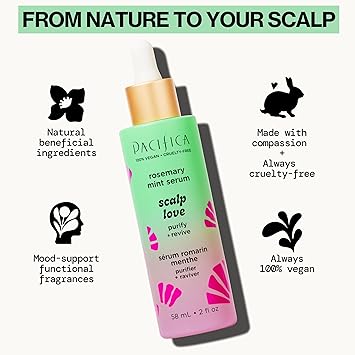 Pacifica Scalp Love Rosemary Mint Serum - Dry, Flaky, and Itchy Scalp Serum, Hydrating, Moisturizing, and Calming Treatment Formulated with Witch Hazel, Vegan and Cruelty-Free - 2 Fl Oz