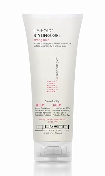 GIOVANNI L.A. Hold Styling Gel - Strong Hold, Hair Gel for Women and Men, Vegan, No Parabens or Phthalates, Infused with Natural Botanical Ingredients, Lightweight Hair Styling Gel - 6.8 oz (1 Pack)