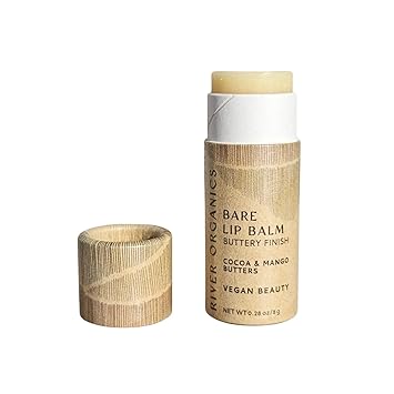 Nourishing Organic and Vegan Bare Lip Balm, 0.28 OZ, by River Organics, no added scent, color or toxic ingredients. Natural Lip Care for severely chapped lips.