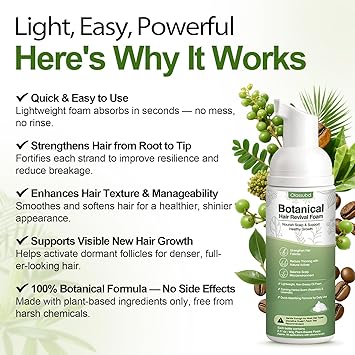 - Hair Thickener Foam | Rosemary & Lavender for Daily Botanical Balance.Powered by rosemary and lavender, this hair growth product blends nature’s most soothing botanicals into your daily routine. Lightweight and non-sticky, this hair supplement for growth absorbs quickly—no rinse needed. Perfect for all hair types, this hair oil foam nourishes the scalp and supports healthy growth. With consistent use hair regrowth foam, visible results can be seen in just 8-12 weeks—naturally and effortlessly.
