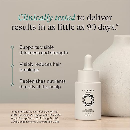 Nutrafol Women's Hair Serum, Supports Visibly Thicker and Stronger Hair, Vegan, Lightweight and Fast-Absorbing