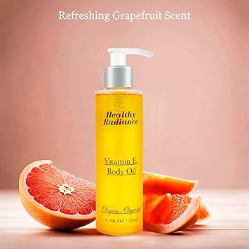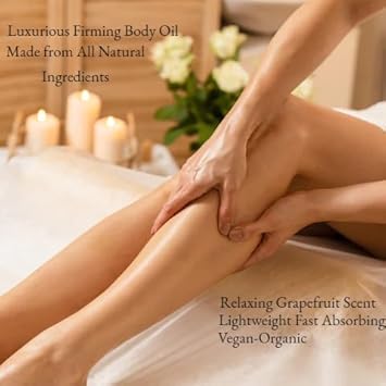 Body Oil for Women |100% Vegan-Organic Vitamin E Body Oil | Undaria Algae Extract| Passion Fruit| After Shower Firming Oil | Grapefruit Scent| Cruelty Free Fast Absorbing Lightweight 6.7Fl Oz