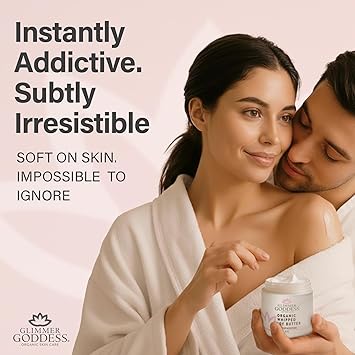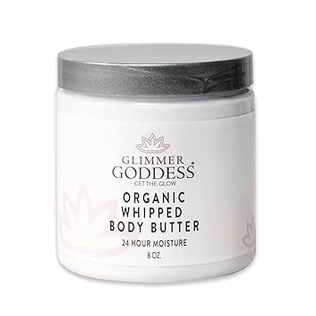Glimmer Goddess Organic Whipped Body Butter for Women - Moisturizer Cream with Shea & Cocoa Butter, Almonds & Coconut Oil - Unscented, 8oz