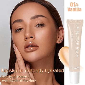 Summer Hydrating Lip Butter Balms Lip Gloss,Natural Vegan Lip Balm Tinted for Instant Moisture,Shine,Hydration Sheer-Tinted,Soothes & Softens Dry Lips,Bálsamo labial hidratante 01#Vanilla (0.5 Fl Oz)