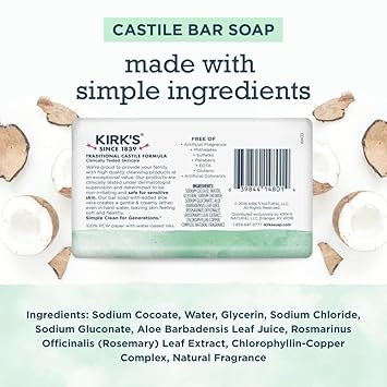 - KIRK’S is the only coconut castile soap brand that has been continually made since 1839. We use carefully sourced ingredients for health-conscious families who want every-day, high-quality cleansing products - a natural clean you can feel great about; from head to toe and throughout your home!