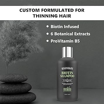 - Hair Thickening Shampoo for Thinning Hair - An elite biotin shampoo for hair growth for men and women. Mokita Naturals biotin for hair growth shampoo and conditioner power duo is the perfect combo to help revitalize and protect your hair. It helps repair damage and helps promote stronger, fuller and richer hair.