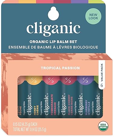 Cliganic Organic Lip Balm Set (6 Flavors) - 100% Natural Hydrating, Moisturizing for Dry Cracked Lips, for Men & Women