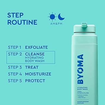 BYOMA Hydrating Body Wash - For Normal to Dry Skin - Hydrating, Creamy Body Wash with Squalane, Beta Glucan - Cleanses, Softens & Soothes - Skin Barrier Repair - 16.9 fl oz