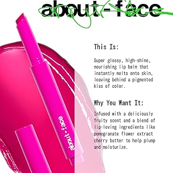 - Nourishing Ingredients: Infused with a deliciously fruity scent and a blend of lip-loving ingredients like pomegranate flower extract and cherry butter to plump and moisturize.