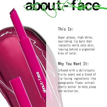 about-face Cherry Pick Lip Color Butter - High-Shine, Hydrating Lip Balm with Pomegranate Flower Extract & Cherry Butter - Vegan, Cruelty-Free, Clean Beauty - 0.06 oz (Berry Smash - Spring Violet)