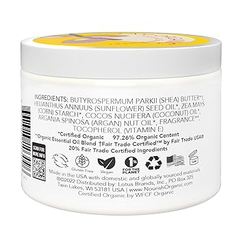 Fair Trade Shea Butter - Provides intense hydration and conditioning; locks in moisture and deeply softens skin; enriched with antioxidant Vitamin E for barrier protection.