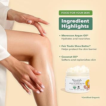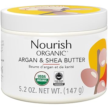 Nourish Organic Argan & Shea Butter - Vanilla Body Butter with Coconut Oil for Skin, Body Lotion for Dry Skin + Washable Cotton Round