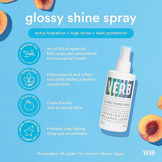 VERB Glossy Shine Spray - Moisturizing Heat Protection Hair Spray - Adds High Shine and Primes for Styling - Vegan, No Parabens or Harmful Sulfates