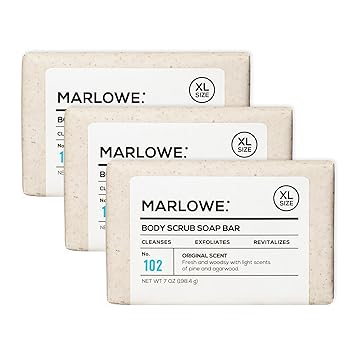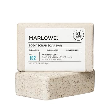 MARLOWE. No. 102 Body Scrub Soap 7 oz, Exfoliating Soap Bar with Shea Butter, Olive Oil & Green Tea Extracts, Cleanses, Smooths & Revitalizes Skin, Original Sage & Fir Scent