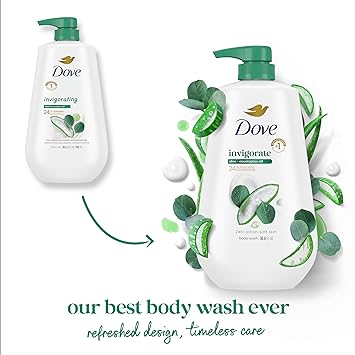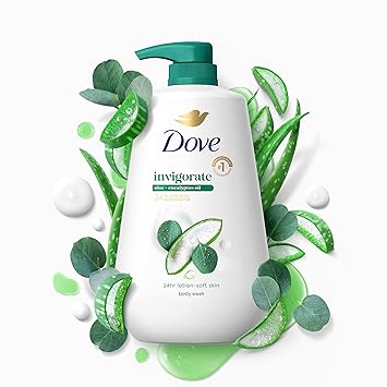 Dove Body Wash with Pump Invigorate Aloe & Eucalyptus For 24hr Lotion-Soft Skin Moisturizing Skin Cleanser with No Sulfates No Parabens 30.6 Oz