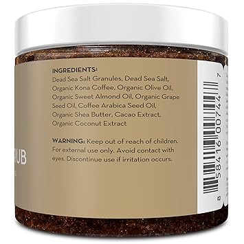 Arabica Coffee Scrub from Pure Body Naturals is as versatile as it is effective! Our incredible blend kicks off with Organic Kona Coffee and Coffee Arabica Seed Oil. Loaded with caffeine, these two powerhouse ingredients naturally stimulate the skin, helping reduce the appearance of conditions like stretch marks and age spots. But those aren’t the only skin problems our Coffee Scrub soothes. Dead Sea Salt is a gentle exfoliator, buffing away dead skin cells and help fighting acne breakouts, blackheads, whiteheads, and other blemishes. For an extra boost of TLC, Coconut, Olive, Grape Seed, and Sweet Almond team up to create a blend of oils that will moisturize and hydrate your skin. Added to that antioxidant-rich ingredients like Shea and Cocoa Butter, and this is one scrub your skin will thank you for!