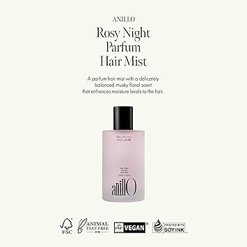 ANILLO Rosy Night Vegan Hair Perfume Long-Lasting Floral Musky Scented with Damask Rose Extract, Rosehip Oil, Peptide Complex for All Hair Type, Free of Silicone & Parabens (3.38 fl. Oz)
