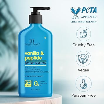 Botanic Hearth Vanilla & Peptide Body Lotion 16 fl oz | Soft & Smooth Skin | 5 Oil Blend & Butters | 5-in-1 Care | Paraben Free, Dye Free | Daily Moisturizing Lotion for All Skin Types