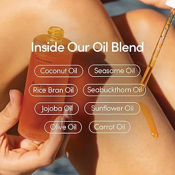 - SPECIAL OIL BLEND: Nourishes, moisturizes, softens, hydrates, and calms skin. Made up of Sunflower Oil, Coconut Oil, Jojoba Oil, Sesame Oil, Olive Oil, Rice Bran Oil, Carrot Oil, and Seabuckthorn Oil.