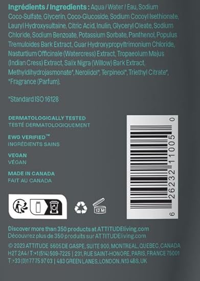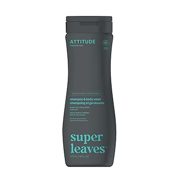 ATTITUDE 2-in-1 Body Wash and Hair Shampoo, EWG Verified Shower Gel, Dermatologically Tested, Made with Naturally Derived Ingredients, Vegan Personal Care, Black Willow and Aspen, 16 Fl Oz