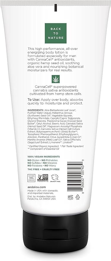 Andalou Naturals CannaCell MEN Energizing Body Lotion, 8.5 Ounce