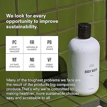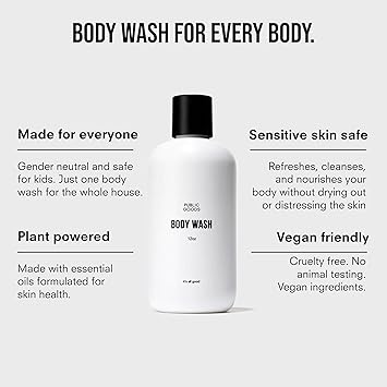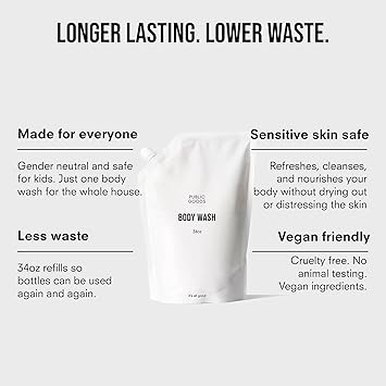 Public Goods Body Wash for Men and Women | Natural Soap for Bath & Shower | Body Scrub Made with Organic Essential Oils | Sulfate & Paraben Free | Vegan Friendly | 34 Fl Oz Refill