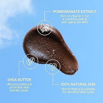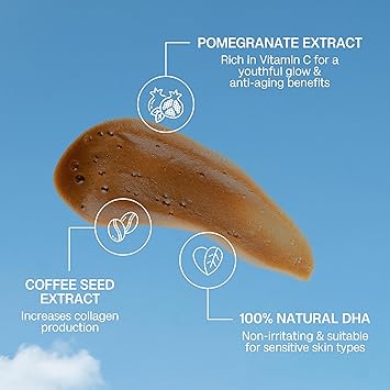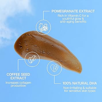 - 𝗛𝘆𝗱𝗿𝗮𝘁𝗶𝗻𝗴 𝗙𝗼𝗿𝗺𝘂𝗹𝗮 𝗙𝗼𝗿 𝗦𝗼𝗳𝘁, 𝗠𝗼𝗶𝘀𝘁𝘂𝗿𝗶𝘇𝗲𝗱: Skin Our self tanning mousse doubles as skincare, addressing dry skin concerns with premium hydrating ingredients. Formulated with soothing chamomile extract to calm sensitivity sunless tanner , antioxidant-rich coffee seed extract to fight free radicals, and rejuvenating pomegranate extract for intense moisture.