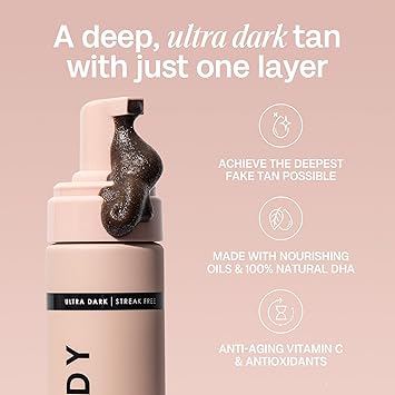 - 𝗦𝗲𝗹𝗳-𝗧𝗮𝗻𝗻𝗲𝗿 𝗨𝗹𝘁𝗿𝗮 𝗗𝗮𝗿𝗸, 𝗡𝗮𝘁𝘂𝗿𝗮𝗹-𝗟𝗼𝗼𝗸𝗶𝗻𝗴 𝗧𝗮𝗻: Transform your skin with our deepest, most natural-looking Self Tan . This lightweight Ultra Dark mousse delivers a flawless bronzed glow with Fake Tan color technology that eliminates orange tones. Perfect for special events or year-round confidence, our tinted formula with Color Guide Technology ensures even application with no streaking.