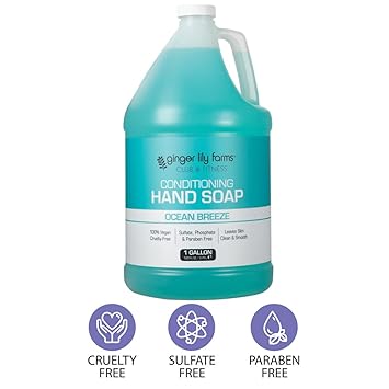 Ginger Lily Farms Club & Fitness Conditioning Liquid Hand Soap Refill, 100% Vegan & Cruelty-Free, Ocean Breeze Scent, 1 Gallon (128 fl oz)