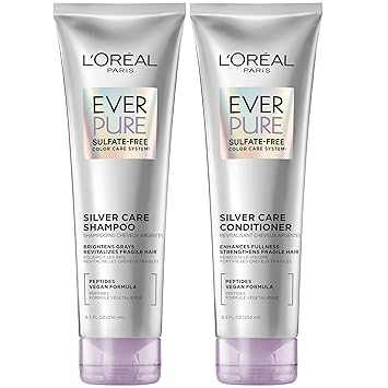 L'Oreal Paris EverPure Silver Care Sulfate Free Shampoo and Conditioner Set, Nourishing Vegan Formula with Peptides for Brightening Gray Hair, 1 Kit