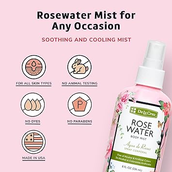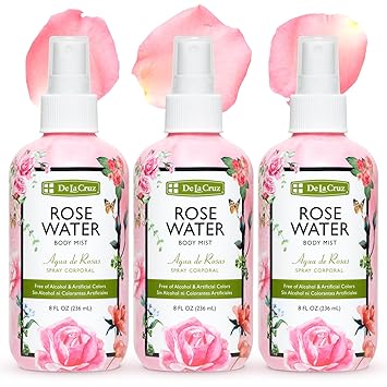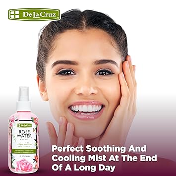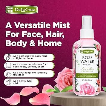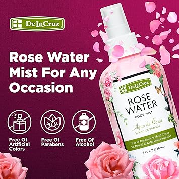 De La Cruz Pure Rose Water Body Mist,Rosewater Spray for Face, Skin & Hair,Toner & Rose Water for Hair Alcohol Free, Paraben Free 8 fl oz (1 Bottles)