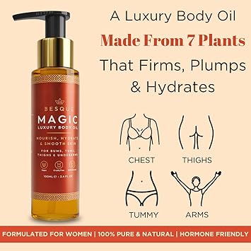 - Luxury Body Oil: Nurture your radiance and embrace beauty at any age with Besque Magic Body Firming Oil, featuring an exquisite blend of 7 cold-pressed oils that will have you feeling like a queen or king.