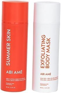 • Complete Body Care Routine - Two premium full-size Abi Ame products in one set: Summer Skin hydrating body serum plus lotion with saccharide isomerate, niacinamide, vitamin B5 & oat extract, and Soft Touch chemical body exfoliating mask with 30% AHAs + 2% BHAs.
