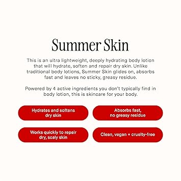 • Hydrates & Repairs Dry Skin - Summer Skin serum-lotion hybrid delivers face-grade active ingredients for long-lasting hydration, repairing skin barrier and leaving skin soft, healthy, and nourished.