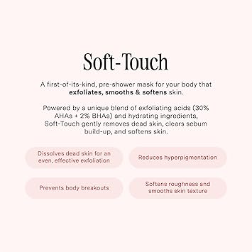 • Smooths & Refines Skin Texture - Soft Touch pre-shower exfoliating mask dissolves dead skin, smooths out bumps, roughness and reduces keratosis pilaris, and improves overall skin radiance.