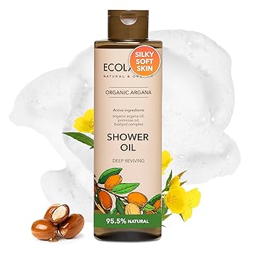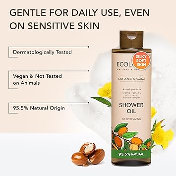 Shower Oil with Organic Argan & Primrose Oil - Moisturizing Body Wash for Women, 95.5% Natural, Vegan, for Sensitive Skin - Deep Hydration & Silky Smooth Feel, 8.5 Fl Oz