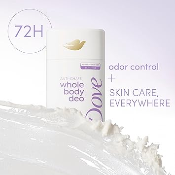 Dove Whole Body Deo Aluminum Free Anti-Chafe Deodorant Stick Coconut & Vanilla for 72h Odor Control 2.6 Oz