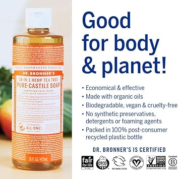 - MADE WITH ORGANIC OILS & CERTIFIED FAIR TRADE INGREDIENTS: Dr. Bronner's Pure-Castile Magic Soap are made with over 70% certified organic & fair trade ingredients—an ethical, sustainable choice and a gentle liquid body soap for all!