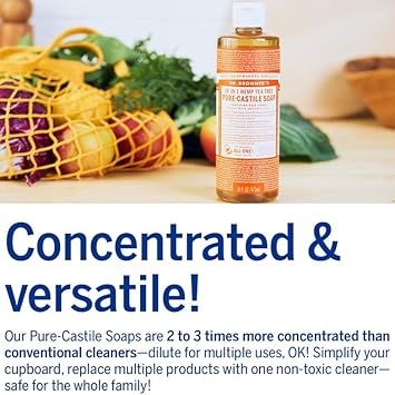 - 3X MORE CONCENTRATED THAN MOST LIQUID SOAPS: Dilute! Dilute! Use as dish soap, makeup brush cleaner, or laundry soap. A little goes a long way—less waste, more value. This versatile Dr. Bronner’s soap is made for countless uses