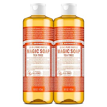 Dr. Bronner's Pure-Castile Magic Soap Liquid (Tea Tree, 32 ounce, 2-Pack) - Made with Regenerative Organic Certified Oils, 18-in-1 Uses: Body, Hair, Laundry & Dishes, Concentrated, Vegan, Non-GMO
