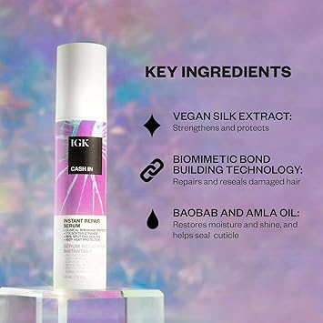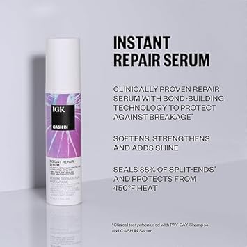 IGK CASH IN Instant Repair Serum | Breakage Protection + Seal Split Ends + Heat Protection | Vegan + Cruelty Free| 1.7 Oz